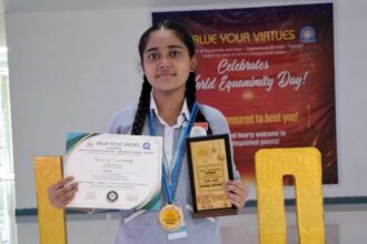 आर्या मनोज जाधव राष्ट्रीय पातळीवर “नॅशनल लेव्हल परफॉर्मर” म्हणून सुवर्णपदकाने सन्मानित