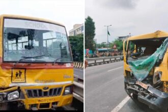 विद्यार्थ्यांना शाळेत घेऊन जाणाऱ्या स्कूल व्हॅन समोरासमोर धडकल्या; विद्यार्थिनीसह दोघांचा मृत्यू, आठ जखमी