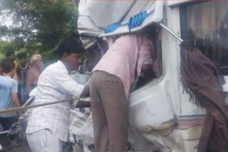 भीषण अपघातात ट्रक-ट्रॅव्हलर यांची समोरासमोर ठोकर; १२ शिक्षक जखमी, चौघांची प्रकृती चिंताजनक