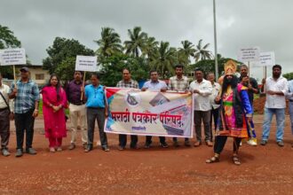 रखडलेल्या मुंबई – गोवा महामार्गासाठी पत्रकारांकडून निवळीत आंदोलन