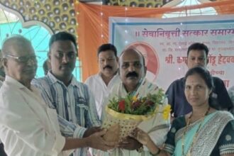 श्री राधाकृष्ण सेवा मंडळ वरवडे मार्फत सेवानिवृत्त मुख्याध्यापक कमलाकर हेदवकर यांचा सत्कार