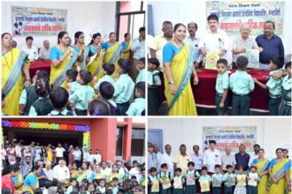 कृ. चिं. आगाशे विद्यामंदिरात विद्यार्थ्यांचे ढोल ताशांच्या गजरात स्वागत