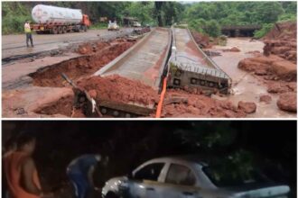 खानू-कशेळी ओढ्यावर ठेकेदार रवी इन्फ्रा कंपनीच्या बेजबाबदारपणामुळे मोठा अपघात टळता टळला!