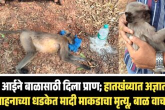 आईने बाळासाठी दिला प्राण; हातखंब्यात अज्ञात वाहनाच्या धडकेत मादी माकडाचा मृत्यू, बाळ वाचले