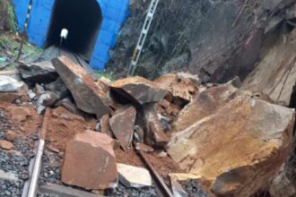 आडवलीजवळ दरड कोसळली; कोकण रेल्वेची धाव थांबली, प्रवासी खोळंबले