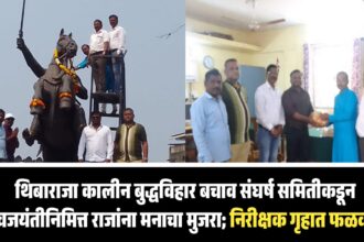 थिबा राजा कालीन बुद्ध विहार बचाव संघर्ष समितीकडून शिवजयंतीनिमित्त राजांना मनाचा मुजरा; निरीक्षक गृहात फळवाटप