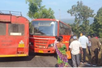 साटवली अवघड वळणावर दोन एसटी बसची समोरासमोर धडक; सुदैवाने जीवितहानी नाही