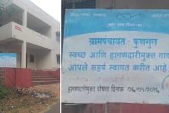 फुणगूसमध्ये हागणदारीमुक्ततेचा फलक! मात्र सार्वजनिक शौचालयाचा प्रश्न कायम