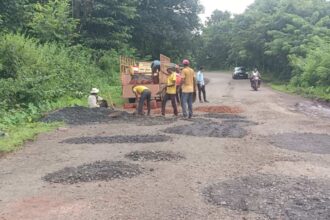 संगमेश्वर–बुरंबी रस्त्यावरील खड्डे भरण्याचे काम सुरू! बातमीची दखल, मात्र थुकपट्टी पद्धतीने काम केल्याने जनतेत संताप