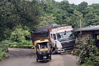 दाभोळे बाजारपेठेतील पुलाचा कठडा तोडून ट्रक घुसला थेट दुकानात
