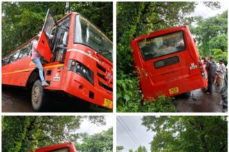 कातूर्डी संगमेश्वर एसटी कोंडउमरे येथे घसरली, रिक्षाला साईड देताना बस वरील ताबा सुटला, पंधरा दिवसात तिसरा अपघात