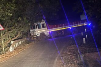 संगमेश्वरमध्ये रात्री अवजड वाहतुकीचा कहर; वांद्री–आंबवली–देवरुख मार्गावर ट्रक अडकल्याने ग्रामस्थ संतप्त
