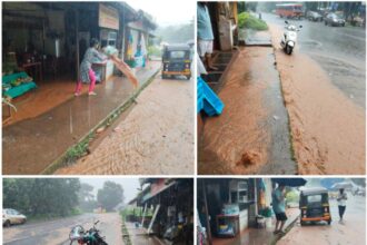 मुंबई-गोवा महामार्गावर हातखंबा परिसरात दुकाने जलमय