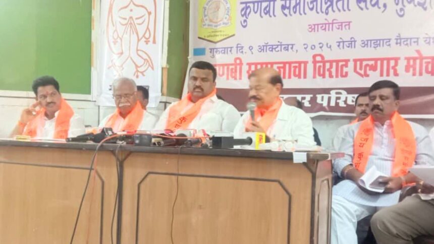 मराठा समाजाला आरक्षण मिळावे, यासाठी मनोज जरांगे यांनी आझाद मैदानावर आंदोलन छेडल्यानंतर राज्य सरकारने २ सप्टेंबर रोजी मराठा आरक्षणासंदर्भात जीआर काढला. त्यानुसार मराठ्यांना हैद्राबाद गॅझेट प्रमाणे “कुणबी–मराठा” आणि “मराठा–कुणबी” अशी जात प्रमाणपत्रे देण्यास सुरुवात झाली. मात्र या निर्णयाला ओबीसी व कुणबी समाजाकडून तीव्र विरोध होत आहे. दरम्यान, कुणबी समाजन्नोती संघटनेचे अध्यक्ष अनिल नवगणे यांनी सरकारला इशारा दिला की, “मराठ्यांना कुणबी दाखल्यांच्या माध्यमातून ओबीसी आरक्षण देणे तातडीने बंद करावे. अन्यथा ९ ऑक्टोबर रोजी आम्ही मुंबईत भव्य विराट मोर्चा काढू.”