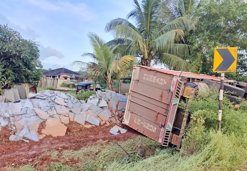 मिळालेल्या माहितीनुसार, महमंद शाहिद रफिक (वय २८, रा. कोदापुर, ता. शिमोगा, जि. वसानगर, कर्नाटक) हा आयसुलेट ट्रक (क्र. केए-२० एबी/४६७४) घेऊन चिरेखाण ते हातिवले असा प्रवास करत होता. पडवे स्टॉपजवळ वाहनावरील नियंत्रण सुटल्याने ट्रक थेट रस्त्याच्या खाली पलटी झाला.