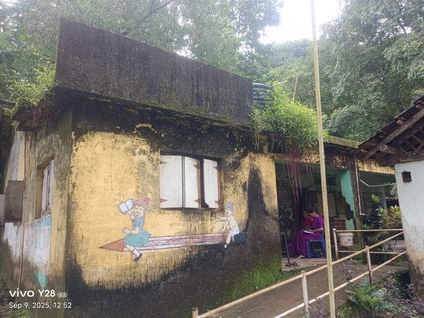 अवघ्या काही वर्षांपूर्वी अद्यापणाचे धडे गिरवण्यासाठी येणाऱ्या या लहान मुलांच्या किलबिलाटाने गजबजणारी सुशोभीत शाळा इमारत विध्यार्थ्यांविना ओस पडून बंद पडली आहे. प्रशासनाच्या दुर्लक्षितपणामुळे इमारतीचा स्लॅब नादरुस्त होऊन गळती लागल्याने पावसाचे पाणी इमारतीच्या खोलीत जाऊन इमारतीचे दरवाजे, खिडक्या तुटून गेल्याने ही इमारत उघडी भगाड झाली आहे. त्यामुळे ही इमारत आता सरपटणारे विषारी सर्प आणि मुक्या जनावरांचे आश्रयस्थान बनले आहे.