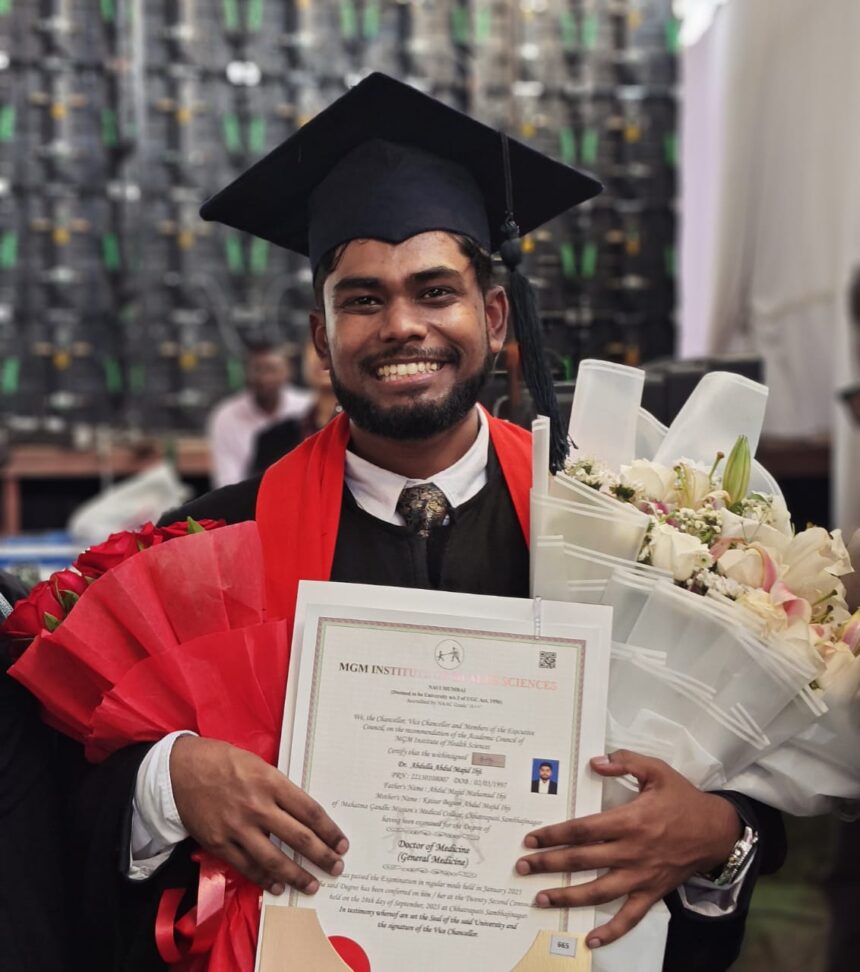 रत्नागिरी जिल्ह्यातील मजगांव येथील डाॅ. अब्दुल्ला अब्दुल मजीद इब्जी यांनी छत्रपती संभाजी नगर येथील एम्.जी.एम्. वैद्यकीय महाविद्यालयातून एम्.डी. चे शिक्षण पूर्ण केले. एम्.जी.एम. महाविद्यालयाने सर्व उत्तीर्ण विद्यार्थ्यांना समारंभपूर्वक पदव्या प्रदान केल्या. त्या मध्ये डाॅ. अब्दुल्ला इब्जी यांनी अभिमानाने पदवी स्वीकारली.