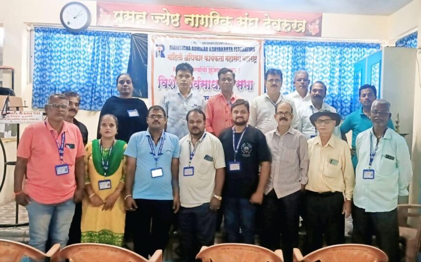 माहितीचा अधिकार कार्यकर्ता महासंघ महाराष्ट्र राज्याच्या संगमेश्वर तालुका शाखेची विशेष सर्वसाधारण सभा दिनांक ४ ऑक्टोबर २०२५ रोजी ज्येष्ठ नागरिक संघ, देवरूख यांच्या सभागृहात उत्साहात पार पडली. या सभेला जिल्हाध्यक्ष मनोहर गुरव यांची प्रमुख उपस्थिती होती.