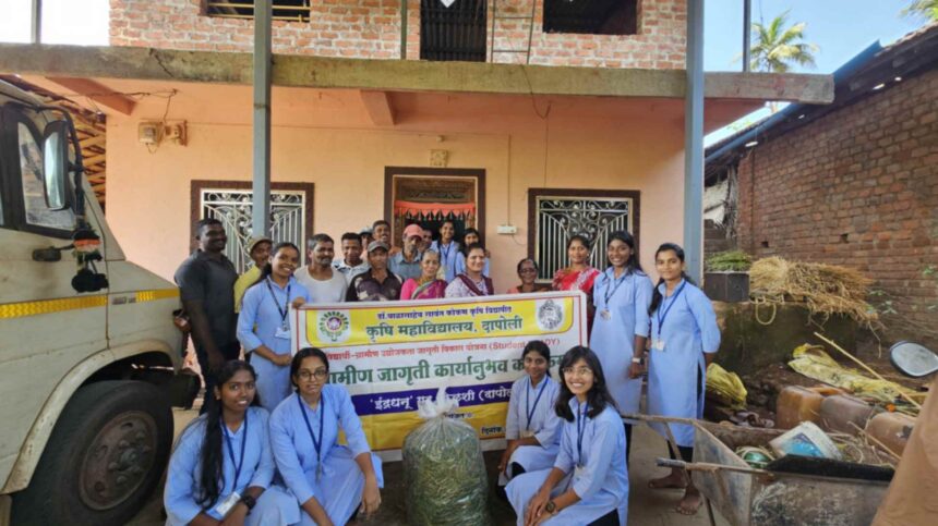 दापोली कृषी महाविद्यालयाच्या ग्रामीण जागरूकता कार्यानुभव कार्यक्रमांतर्गत दापोली तालुक्यातील केळशी येथे कार्यरत असलेल्या इंद्रधनू गटाच्या विद्यार्थिनींनी जगदीश कुळे यांच्या इथे मूरघास बनविण्याचे प्रात्यक्षिक दाखवले.