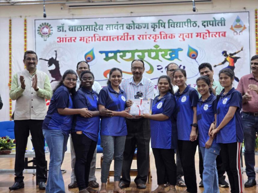 डॉ. बाळासाहेब सावंत कोकण कृषी विद्यापीठ, दापोली आयोजित आंतर महाविद्यालयीन सांस्कृतिक युवा महोत्सव ‘मयूरपंख २०२५’ मध्ये जिजामाता महिला कृषी महाविद्यालय, मांडकी-पालवणच्या विद्यार्थिनींनी लघु-नाटिका सांस्कृतिक स्पर्धेत द्वितीय क्रमांक मिळवून महाविद्यालयाचे नाव उज्वल केले आहे.