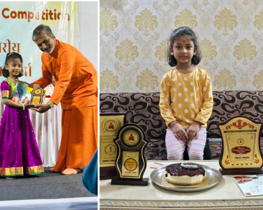 संगमेश्वर तालुक्यातील निढळेवाडीची केवळ सहा वर्षीय कन्या श्रीशा अनुप पिंपरकर हिने आपल्या बुद्धिमत्ता आणि वक्तृत्वाच्या जोरावर राज्यभरात चमक दाखवली आहे. ‘चिन्मय मिशन मुंबई’तर्फे आयोजित चिन्मय गीता फेस्ट २०२५ या प्रतिष्ठित स्पर्धेतील राज्यस्तरीय फेरी नुकतीच पुण्यात पार पडली.