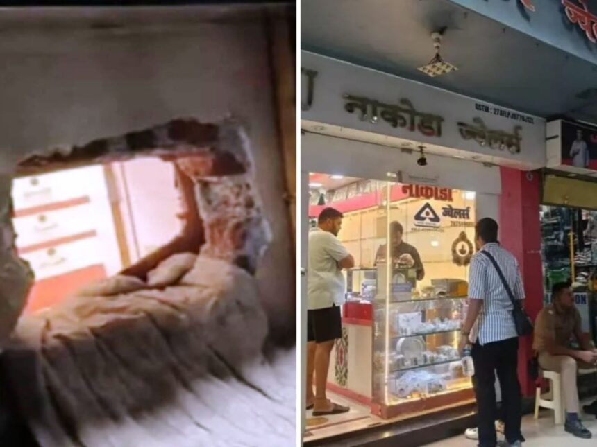 ही घटना शनिवार रात्री घडली असून, नाकोडा ज्वेलर्सचे मालक पीयूष दिनेश जैन यांनी दुकान बंद करून घरी गेल्यानंतर ही चोरी करण्यात आली. चोरट्यांनी प्रथम शेजारील ‘जान्हवी फॅशन’ या कपड्याच्या दुकानाचे शटर फोडले आणि तिथून भिंतीतून बोगदा खोदून थेट ज्वेलर्स दुकानात प्रवेश केला.