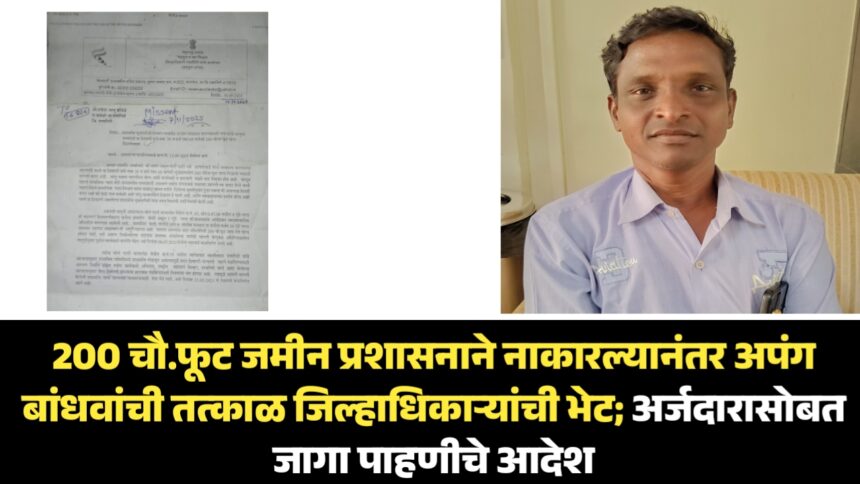 दरम्यान प्रशासनाने विविध कारणे पुढे करत जागा न देण्याचा निर्णय समोर आल्याने याच निर्णयाच्या पत्रकाविरोधात दिनांक १३ नोव्हेंबर २०२५ रोजी राकेश कांबळे यांच्यासह अपंग बांधवांनी जिल्हाधिकारी मनुज जिंदाल यांची भेट घेतली. त्यांना शासन निर्णय, आधीची पत्रव्यवहार, जागेची मागणी व कारणे, जिल्हा प्रशासनाकडून मिळालेले नकाराचे निवेदन याची सविस्तर माहिती देण्यात आली. जिल्हाधिकारी मनुज जिंदाल यांनी तत्काळ प्रतिक्रिया देत संबंधित अधिकाऱ्यांना प्रत्यक्ष जागा पाहणी करण्याचे आदेश दिले आहेत. त्यामुळे या प्रकरणात पुढील कार्यवाही वेगाने होण्याची शक्यता आता निर्माण झाली आहे.
