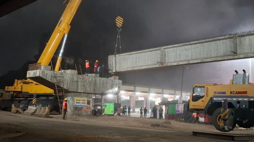 सोमवारी रात्री संगमेश्वर एसटी स्टॅंड समोर गर्डर बसवण्याच्या कामाला सुरवात करणार म्हणून संगमेश्वर पोलिसांची फौज अगदी महामार्गावरील बावननदी पासून आंबेड शास्त्रीपूल पर्यंत तैनात केली होती. वाहतूक सुरळीत रहावी व काही अनर्थ घडू नये यासाठी अतिरिक्त पोलिसांची टीम उपस्थित होती. रात्री अकरा ते पहाटे तीन वाजेपर्यंत गर्डर बसवण्याचे काम केले जाणार असल्याने वाहतुकीला अडथळा निर्माण होऊ नये, पर्यायी मार्गाने वाहतूक सुरळीत करण्याच्या सूचना वरिष्ठांकडून आपल्याला मिळाले असल्याचे संगमेश्वर पोलीस निरीक्षक राजाराम चव्हाण यांनी पत्रकारांना माहिती देताना सांगितले.