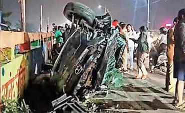 अंबरनाथ पूर्व–पश्चिमेला जोडणाऱ्या उड्डाणपुलावर शुक्रवारी सायंकाळी वाहतूक कोंडी झाली होती. याचवेळी हुतात्मा चौकातून पश्चिमेकडे जाणारी एक कार अत्यंत भरधाव वेगाने रॉंग साइडने येत होती. अचानक चालकाचा वाहनावरील ताबा सुटला आणि कारने तीन दुचाकींना चिरडत जोरदार धडक दिली. कार ड्रायव्हर लक्ष्मण शिंदेंना हृदयविकाराचा झटका आल्याने कारवरील ताबा सुटल्याने हा भीषण अपघात झाला, अशी चर्चाही घटनास्थळी होती. या धडकेनंतर काहीजण पुलावरच फेकले गेले, तर एक दुचाकीस्वार थेट पुलाखाली कोसळला. या अपघातात कार पलटी होऊन चेंदामेंदा झाली. घटनेनंतर परिसरात मोठी गर्दी जमली. पोलिसांनी तातडीने घटनास्थळी धाव घेत तपास सुरू केला.