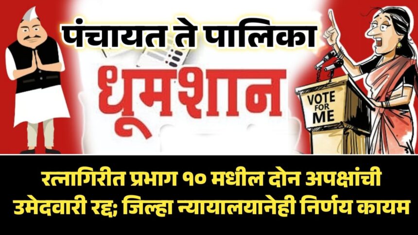 रत्नागिरी नगरपालिकेच्या प्रभाग क्रमांक १० मधील दोन अपक्ष उमेदवारांची नामनिर्देशन पत्रे अवैध ठरवण्याच्या निवडणूक निर्णय अधिकाऱ्यांच्या आदेशाला जिल्हा न्यायालयानेही दुजोरा दिला आहे. मंगळवारी (दि. २५) झालेल्या सुनावणीत न्यायालयाने दोन्ही उमेदवारांचे अपील नामंजूर करतावर प्राथमिक निर्णय कायम ठेवला.