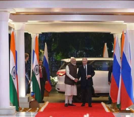रशियाचे राष्ट्राध्यक्ष व्लादिमीर पुतिन दोन दिवसांच्या भारत दौर्यासाठी दिल्लीमध्ये दाखल झाले आहेत. त्यांचे विमान पालम विमानतळावर उतरताच पंतप्रधान नरेंद्र मोदी यांनी उपस्थित राहून त्यांचे स्वागत केले आणि त्यांना आलिंगन दिले. स्वागतानंतर दोन्ही नेते एकाच वाहनातून पुढील कार्यक्रमांसाठी रवाना झाले. 2022 मध्ये युक्रेनवरील रशियन आक्रमणानंतर पुतिनांचा हा पहिलाच भारत दौरा असून आंतरराष्ट्रीय राजनैतिक दृष्टीने ही भेट विशेष महत्त्वाची मानली जात आहे.