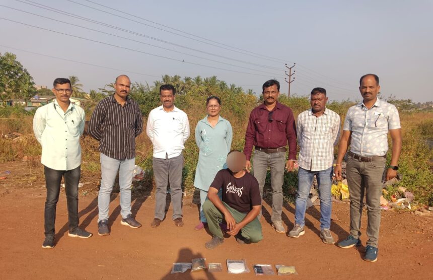 ८ डिसेंबर २०२५ रोजी पोलीस निरीक्षक नितीन ढेरे यांच्या मार्गदर्शनाखाली स्थानीक गुन्हे अन्वेषण शाखेचे पथक रत्नागिरी शहर पोलीस ठाण्याच्या हद्दीत पेट्रोलिंग करत असताना कोकणनगर कब्रस्तानाशेजारील मोकळ्या जागेत हातात कॅरीबॅग घेऊन उभा असलेला एक इसम संशयास्पद स्थितीत दिसला. पोलिसांचे लक्ष त्याच्या हालचालींकडे जाताच तो पळून जाण्याचा प्रयत्न करू लागला. तथापि, पथकाने त्याला योग्य बळाचा वापर करून दुपारी २.३० वा. पंचांसमक्ष ताब्यात घेतले. चौकशीदरम्यान त्याने आपले नाव रईस सईद खान (वय ३२, रा. घर नं. ३९०, मराठी शाळेसमोर, कोकणनगर, रत्नागिरी) असे सांगितले. त्याची अंगझडती घेताना पिवळ्या कॅरीबॅगमध्ये १३ पारदर्शक पिशव्यांमध्ये पॅक केलेला एकूण २०४ ग्रॅम वजनाचा काळपट-हिरवट ‘गांजा’ सदृश अंमली पदार्थ, एक डिजिटल वजनकाटा, दोन मोबाईल फोन आणि ₹३,५०० रोख रक्कम असा अंदाजे ₹४९,७००/- किमतीचा मुद्देमाल जप्त करण्यात आला.