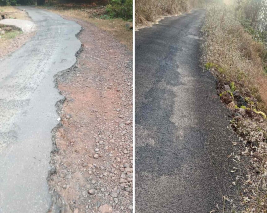 उपअभियंता जिल्हा परिषद बांधकाम उपविभाग रत्नागिरी कळझोंडी फाटा क्र.१ येथील रस्त्याच्या मोरीला सुमारे दोन फुटाचे घबदार पडले असून एस.टी. वाहतूक सध्या रस्त्याच्या बाहेरील पर्यायी मार्गाने वळविण्यात आली आहे. या रस्त्यावर साईट पट्ट्या व खड्ड्यांमुळे येथील वाहन चालकांना तारेवरची कसरत करावी लागत आहे .या मार्गावरून जाताना गावातील ग्रामस्थ विद्यार्थी प्रवासी पर्यटक यांच्या जीवित फार मोठा धोका निर्माण झाल्यास जबाबदार कोण? असा प्रश्न ग्रामस्थांनी केला आहे.