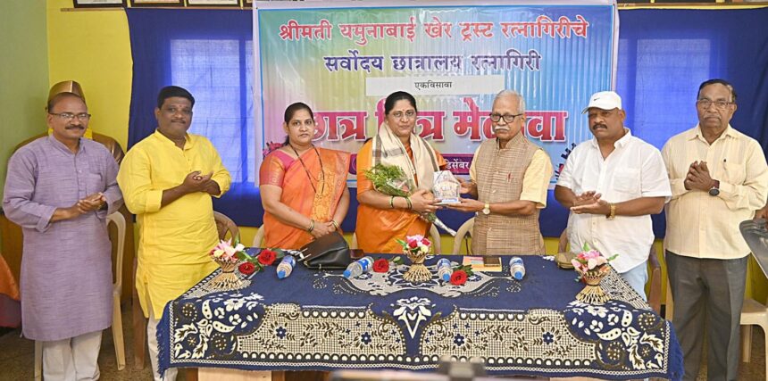 ट्रस्ट संचलित सर्वोदय छात्रालयाचा २१ वा छात्रमित्र मेळावा आज छात्रालयाच्या सभागृहात झाला. त्यावेळी त्या बोलत होत्या. याप्रसंगी नूतन नगराध्यक्ष सौ. शिल्पा सुर्वे, स्थानिक नगरसेवक राजेश तोडणकर व सौ. मानसी करमरकर यांचा सन्मानचिन्ह, शाल, श्रीफळ, पुष्पगुच्छ देऊन हरिश्चंद्र गीते, विश्वस्त पांडुरंग पेठे आणि सदस्य वीणा काजरेकर यांनी ट्रस्टतर्फे सन्मान केला.