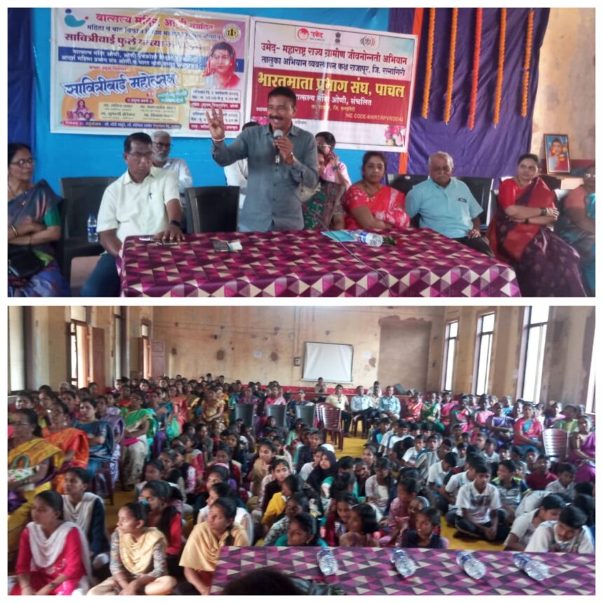स्त्री शिक्षणापासून पूर्णपणे वंचित असलेल्या काळात क्रांतीज्योती सावित्रीबाई फुले यांनी असंख्य सामाजिक अडचणी, अपमान आणि विरोध सहन करून मुलींसाठी पहिली शाळा सुरू केली. त्यांच्या त्या धाडसी आणि दूरदर्शी कार्यामुळेच आज महिला शिक्षणाच्या जोरावर विविध क्षेत्रांत भरीव योगदान देत आहेत, असे प्रतिपादन महाराष्ट्र राज्य राष्ट्र सेवा दलाचे संघटक बाबासाहेब नदाफ यांनी केले. उमेद महाराष्ट्र राज्य जीवनोन्नती अभियान, राजापूर अंतर्गत भारत माता प्रभाग, पाचल संचलित वात्सल्य मंदिर, ओणी यांच्या संयुक्त विद्यमाने पाचल वाडिया हाल येथे सावित्रीबाई फुले यांच्या जयंतीनिमित्त महिला मेळाव्याचे आयोजन करण्यात आले होते. या कार्यक्रमात बाबासाहेब नदाफ प्रमुख अतिथी म्हणून बोलत होते.