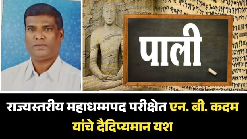 पालि ॲन्ड बुद्धिस्ट रिसर्च अँड ट्रेनिंग इन्स्टिट्यूट, पुणे आणि सत्याग्रह महाविद्यालय, नवी मुंबई यांच्या संयुक्त विद्यमाने शैक्षणिक वर्ष २०२५–२६ मध्ये आयोजित करण्यात आलेल्या राज्यस्तरीय ऑनलाइन महा धम्मपद पालि भाषा महापरीक्षेत लांजा तालुक्यातील भारतीय बौद्ध महासभा, जिल्हा रत्नागिरीचे महासचिव एन. बी. कदम यांनी ९४ टक्के गुणांसह घवघवीत यश संपादन केले आहे. ही परीक्षा दि. २३ नोव्हेंबर २०२५ रोजी पार पडली होती.