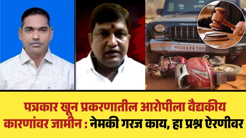पत्रकार शशिकांत वारिशे खून प्रकरणातील आरोपीला वैद्यकीय कारणास्तव अल्पकालीन जामीन मंजूर करताना न्यायालयाने मधुमेह, उच्च रक्तदाब, हृदयविकारासंबंधी उपचार आणि मानसिक तणाव या बाबींची नोंद घेतली आहे. आरोपीवर अँजिओप्लास्टी करण्यात आली असून पुढील काळजी व नियमित तपासणी आवश्यक असल्याचे वैद्यकीय अहवालांत नमूद असल्याचा उल्लेख आदेशात आहे. त्यामुळे कठोर अटींच्या अधीन राहून सहा आठवड्यांचा अल्पकालीन जामीन देणे उचित ठरेल, असा निष्कर्ष न्यायालयाने नोंदवला आहे.