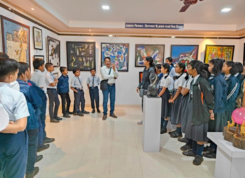 राजापूर तालुक्यातील पडवे येथील नवोदय विद्यालयाच्या इयत्ता सहावी ते आठवी मधील ८० विद्यार्थ्यांनी आज व्यापारी पैसा फंड संस्था संगमेश्वर संचलित पैसा फंड इंग्लिश स्कूलच्या कला वर्ग आणि कलादालनाला भेट देऊन प्रशालेतर्फे राबविण्यात येणाऱ्या विविध कलाविषयक उपक्रमांची माहिती घेतली. कलादालनातील कलाकृती पाहून नवोदयचे विद्यार्थी भारावून गेले.
