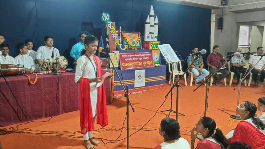 बंकिमचंद्र चटर्जी यांनी लिहिलेल्या वंदे मातरम या राष्ट्रीय गीताला १५० वर्षे पूर्ण झाल्याच्या निमित्ताने वंदे मातरम चे वर्णन करणारे समूहगीत आणि शेकडो शास्त्रज्ञांना प्रेरणा देत भारताच्या अंतराळ मोहिमेची मुहूर्तमेढ करून इस्रोचे जनक ठरलेल्या ज्येष्ठ खगोल शास्त्रज्ञ डॉ. विक्रम साराभाई यांच्या पराक्रमाचे गुणगान करणारा इस्रोचा पोवाडा गुरुकुलातील विद्यार्थ्यांनी अत्यंत तालासुरात सादर केला.