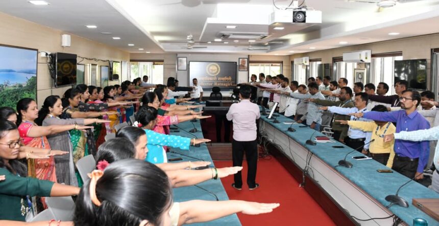मुख्य निवडणूक अधिकारी कार्यालयाच्या सूचनेनुसार 25 जानेवारी या राष्ट्रीय मतदार दिनानिमित्त जिल्हाधिकारी कार्यालयात आज मतदारांसाठीची प्रतिज्ञा घेण्यात आली. निवासी उपजिल्हाधिकारी चंद्रकांत सूर्यवंशी उपस्थित होते. नायब तहसिलदार दीपक चव्हाण यांनी ही प्रतिज्ञा उपस्थितांना दिली.