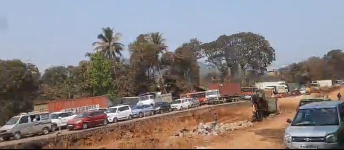 संगमेश्वर — मुंबई–गोवा राष्ट्रीय महामार्गावरील सोनवी पुलादरम्यान महामार्ग चौपदरीकरणाचे काम सुरू असताना वाहतुकीच्या नियोजनाचा अभाव असल्याने वाहनचालकांना मोठ्या त्रासाला सामोरे जावे लागत आहे. सोनवी पुलाजवळ दोन्ही बाजूंनी सलग दोन दिवस वाहनांच्या लांबच लांब रांगा लागल्या असून, या कोंडीचा थेट फटका संगमेश्वर बाजारपेठेला बसत आहे. सकाळच्या वेळेत मालवाहतूक व प्रवासी वाहतूक खोळंबल्याने व्यापारी, स्थानिक नागरिक आणि प्रवाशांमध्ये नाराजी व्यक्त केली जात आहे.वाहतूक कोंडी नियंत्रणात आणण्यासाठी पोलिसांना मोठी कसरत करावी लागत असून, अपुऱ्या मनुष्यबळात वाहतूक सुरळीत करण्याचे प्रयत्न सुरू आहेत. मात्र, योग्य नियोजन आणि पर्यायी मार्गांची व्यवस्था नसल्याने समस्या वारंवार उद्भवत असल्याचे चित्र आहे. महामार्ग चौपदरीकरणाच्या कामादरम्यान ठोस वाहतूक व्यवस्थापन आराखडा तयार करून तातडीने अंमलबजावणी करावी, अशी मागणी वाहनचालक आणि स्थानिक नागरिकांकडून होत आहे.