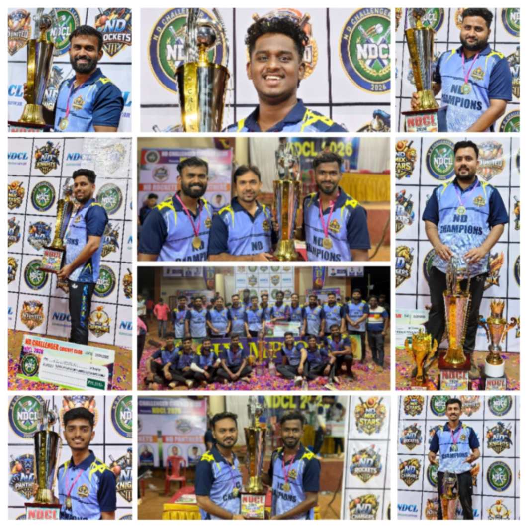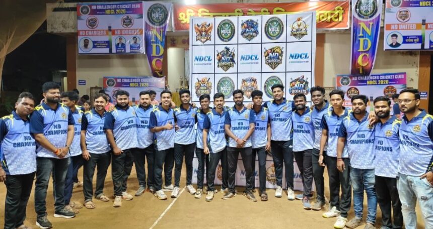 संगमेश्वर येथे आयोजित करण्यात आलेल्या निनावी चॅलेंजर लीग २०२६ बॉक्स अंडर क्रिकेट स्पर्धेचा अंतिम सामना क्रिकेटप्रेमींसाठी अविस्मरणीय ठरला. प्रकाशझोतात खेळवण्यात आलेल्या या सामन्यात एनडी चॅम्पियन आणि एनडी फोनिक्स या दोन बलाढ्य संघांमध्ये अटीतटीची लढत पाहायला मिळाली. मात्र अखेरीस एनडी चॅम्पियन संघाने दमदार कामगिरी करत अंतिम सामना जिंकून विजेतेपदावर आपले नाव कोरले.