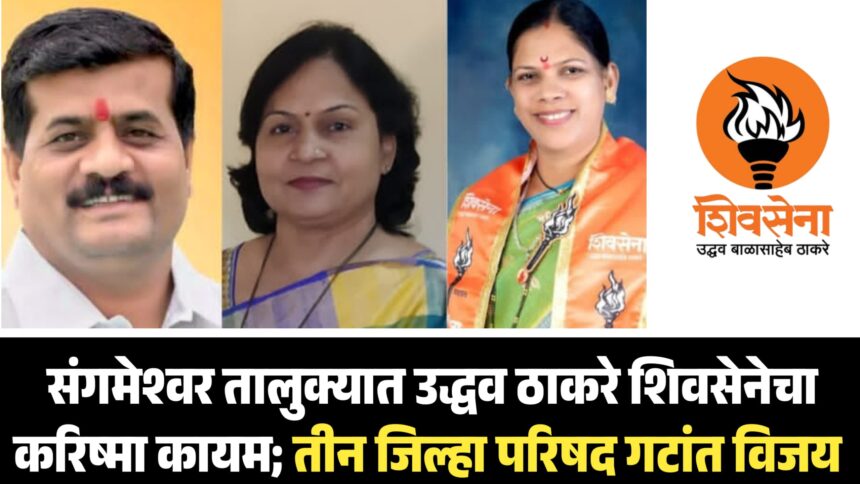 जिल्हा परिषद व पंचायत समिती निवडणुकांचे निकाल आज (सोमवारी) जाहीर होताच संगमेश्वर तालुक्यात उद्धव बाळासाहेब ठाकरे यांच्या शिवसेनेने आपली ताकद पुन्हा एकदा सिद्ध केली. तालुक्यातील सात जिल्हा परिषद गटांपैकी तीन गटांत उद्धव ठाकरे गटाच्या उमेदवारांनी विजय मिळवत दिग्गज नेत्यांचा पराभव केला असून, तालुक्यातील राजकारणात या निकालाने मोठी खळबळ उडवली आहे.