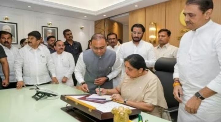 राज्याच्या राजकीय इतिहासात आजचा दिवस अत्यंत ऐतिहासिक ठरला आहे. राज्याच्या पहिल्या महिला उपमुख्यमंत्री म्हणून सुनेत्रा अजित पवार यांनी आज मंत्रालयात उपमुख्यमंत्री पदाचा अधिकृत कार्यभार स्वीकारला. त्यांच्या या नियुक्तीमुळे राज्याच्या राजकारणात एक नवा अध्याय सुरू झाला असून महिला नेतृत्वाच्या दृष्टीने हा क्षण अत्यंत महत्त्वाचा मानला जात आहे.