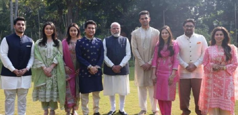 या भेटीचे फोटो सचिन तेंडुलकर यांनी सोशल मीडियावर शेअर करत आपल्या भावना व्यक्त केल्या आहेत. एक्स (पूर्वीचे ट्विटर) वर पोस्ट करत सचिन यांनी लिहिले की, “अर्जुन आणि सानियाच्या विवाह समारंभासाठी माननीय पंतप्रधान नरेंद्र मोदीजींना आमंत्रित करण्याचे आम्हाला सौभाग्य लाभले. या नवदाम्पत्याला दिलेल्या आशीर्वादांसाठी आणि मोलाच्या सल्ल्यासाठी मोदीजींचे मन:पूर्वक आभार.” या भेटीदरम्यान पंतप्रधान मोदी यांनी तेंडुलकर कुटुंबाशी आपुलकीने संवाद साधत अर्जुनच्या पुढील वाटचालीस शुभेच्छा दिल्या.