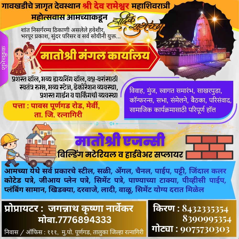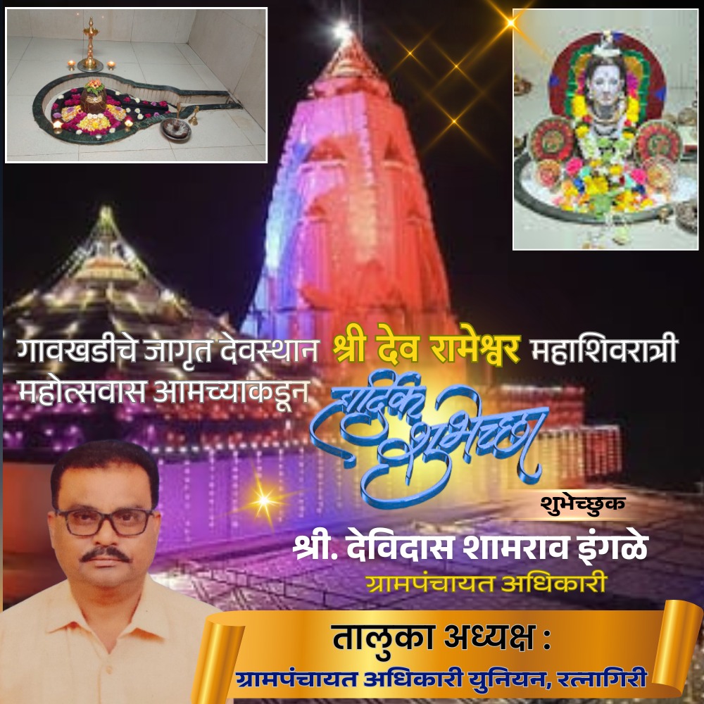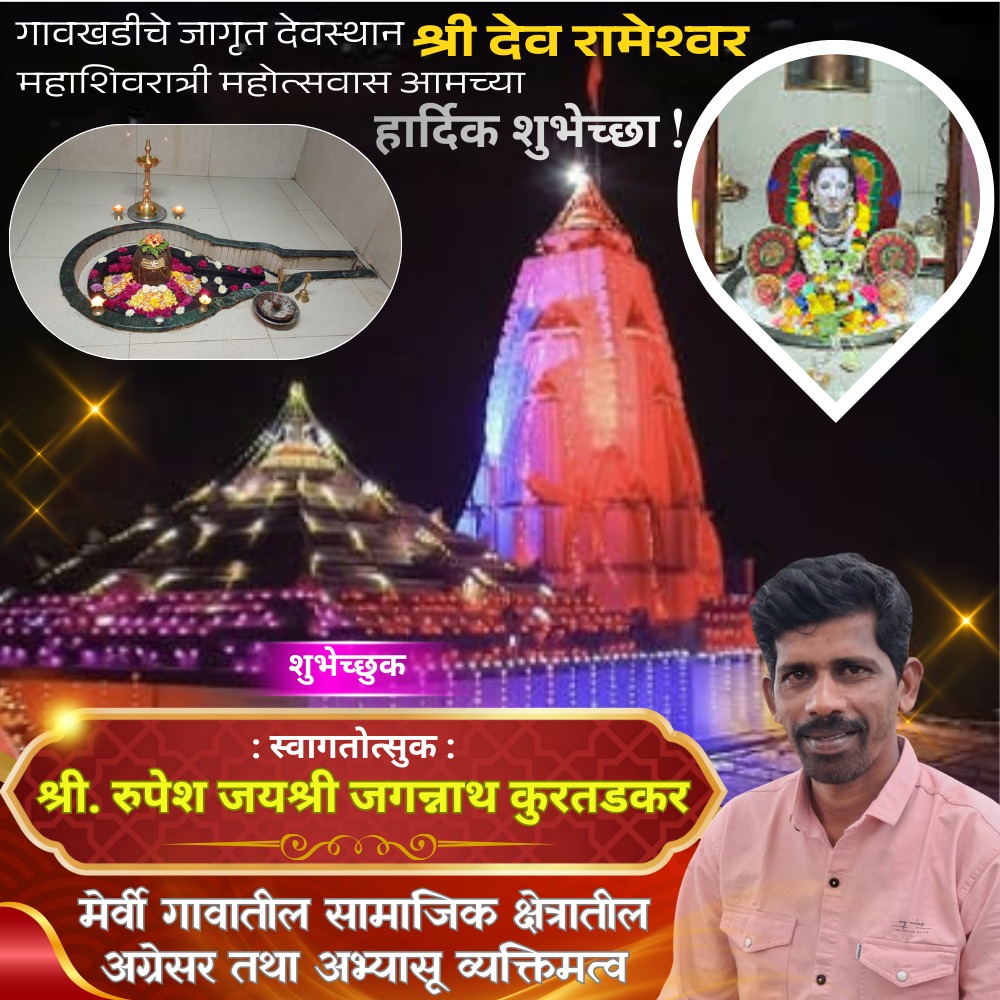 मंगळवार दिनांक 17 फेब्रुवारी 2026 रोजी महाप्रसाद सकाळी 11 ते 3 या वेळेत श्रीदेव रामेश्वर देवस्थान विश्वस्त मंडळ यांच्या सौजन्याने देण्यात येणार आहे.