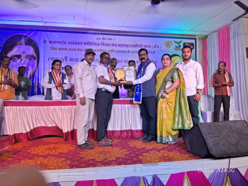 संगमेश्वर तालुक्यातील तेर्ये गावचा सुपुत्र आणि समाजकार्याची विश्वासार्ह ओळख ठरलेले सुनील गेल्ये यांना विश्व समता कलामंच या सामाजिक संस्थेच्या वतीने दिला जाणारा प्रतिष्ठेचा ‘विश्व समता राज्यस्तरीय समाजभूषण’ पुरस्कार प्रदान करण्यात आला. लोवले (ता. संगमेश्वर) येथील मयूरबाग परिसरातील शुभगंधा हॉलमध्ये झालेल्या या दिमाखदार सोहळ्याला तालुक्यासह जिल्हा आणि परजिल्ह्यातील नागरिकांची लक्षणीय उपस्थिती लाभली.