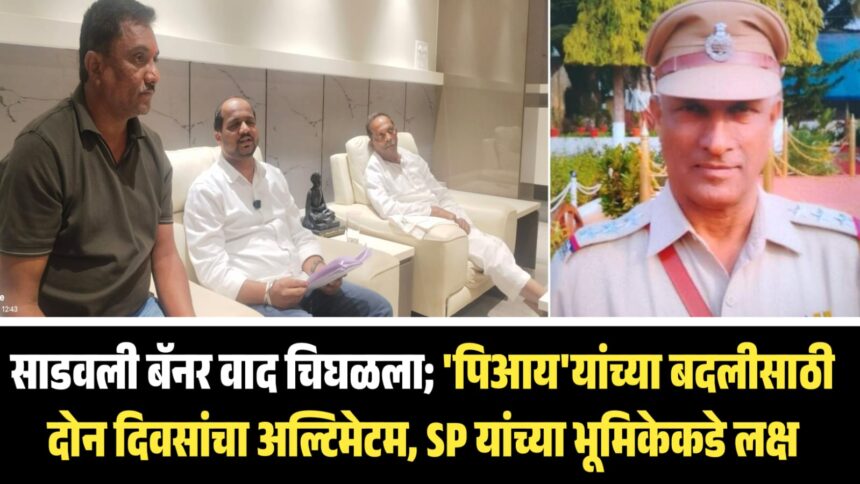 संगमेश्वर तालुक्यातील साडवली येथे उफाळलेल्या बॅनर वादाने आता गंभीर राजकीय वळण घेतले असून, या प्रकरणावरून तालुक्यातील वातावरण कमालीचे तापले आहे. ठाकरे शिवसेनेने संगमेश्वरचे पोलीस निरीक्षक उदय झावरे यांच्या भूमिकेवर संशय व्यक्त करत त्यांच्या तात्काळ बदलीची मागणी केली आहे. दोन दिवसांत कारवाई न झाल्यास संगमेश्वर तालुक्यात ‘सर्वपक्षीय बंद’ पुकारण्याचा आणि पोलीस प्रशासनाविरोधात भव्य मोर्चा काढण्याचा इशारा देण्यात आला आहे.