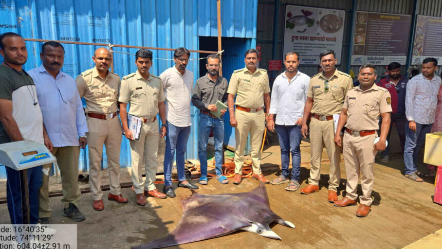 समुद्रातील अति दुर्मीळ आणि कायद्याने संरक्षित असलेल्या शॉर्टफिन डेव्हिल रे (Mobula kuhlii) या माशाची विक्री करण्याचा प्रकार बुधवारी कोल्हापूर येथे उघडकीस आला आहे. फुलेवाडी रिंग रोड परिसरातील फ्रेंडशिप फिश कंपनी या दुकानावर वनविभागाने छापा टाकून सुमारे 130 किलो वजनाचा मृत (पाकट) संरक्षित मासा जप्त केला आहे. या प्रकरणी वन्यजीव संरक्षण कायदा 1972 अंतर्गत गुन्हा दाखल करण्यात आला असून संशयित विक्रेता सुनिल विनोद सातपुते याच्यावर कारवाई करण्यात आली आहे.