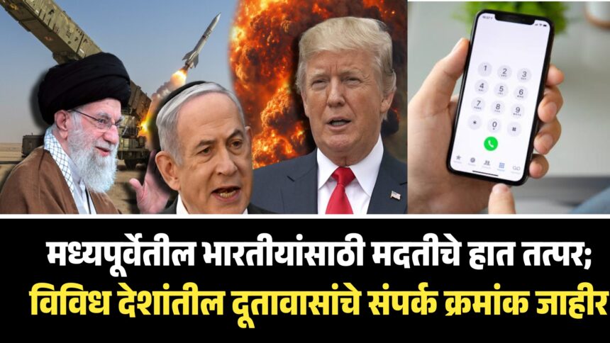 मध्यपूर्वेतील विविध देशांत वास्तव्यास असलेल्या भारतीय नागरिकांच्या सुरक्षिततेसाठी आणि आपत्कालीन परिस्थितीत तात्काळ मदत उपलब्ध व्हावी, यासाठी भारत सरकारच्या परराष्ट्र मंत्रालयाने संबंधित दूतावासांचे व वाणिज्य दूतावासांचे संपर्क तपशील जाहीर केले आहेत. कामगार, व्यावसायिक, विद्यार्थी तसेच पर्यटकांनी आवश्यकतेनुसार या क्रमांकांवर संपर्क साधावा, असे आवाहन करण्यात आले आहे.